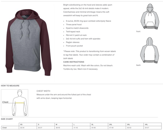 JHWMS Arc Logo Raglan Colorblock Pullover Hooded Sweatshirt - Maroon Heather